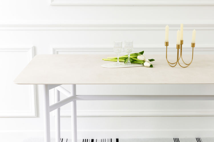 엣지 포세린 식탁은 무광 포세린 스톤을 사용하여 제작되었습니다.